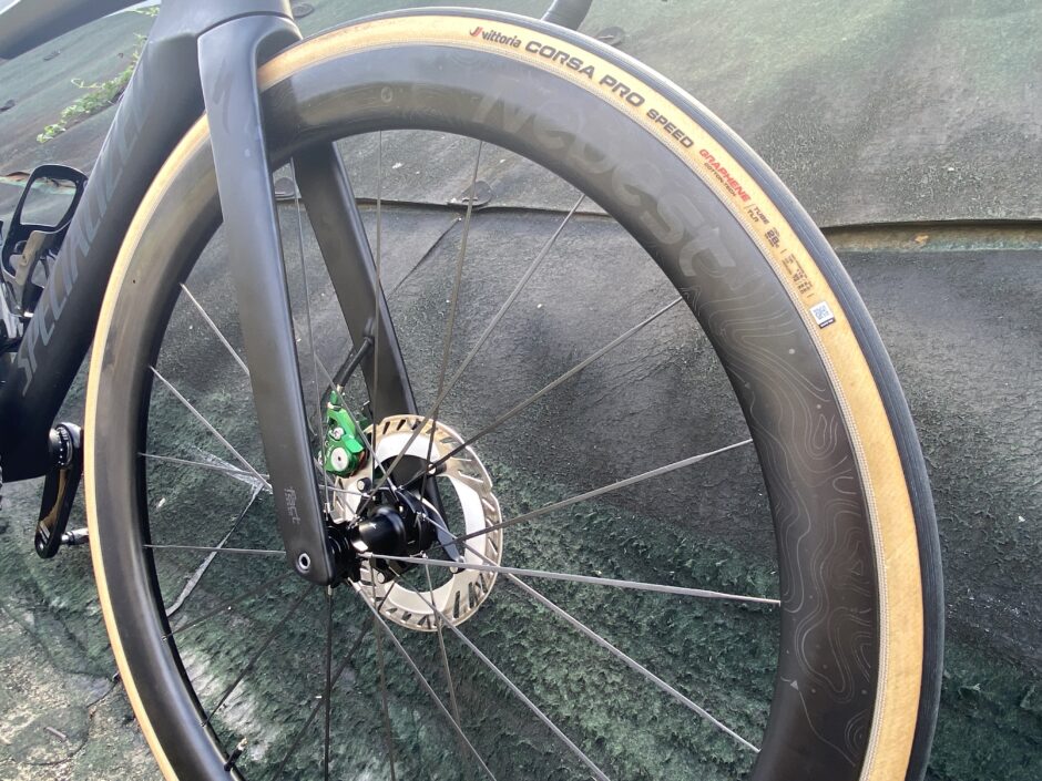 COSMIC SLRに付いていたタイヤはコルサネクストTLRで、前25C、後ろ28C。