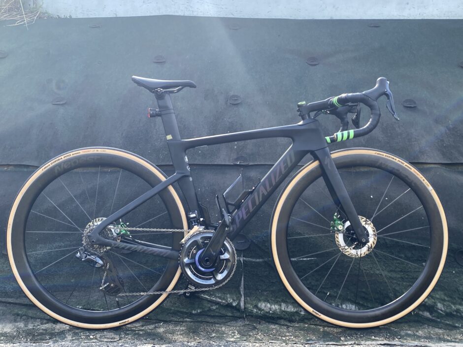 7月末に行われた競輪場イベント用に、空力パーツマシマシにすべくMADONE SLRから拝借していました。