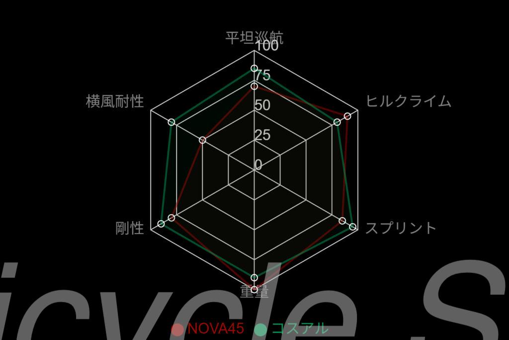 重要なのは、コスアルとNOVA45の間には、各項目においてどのくらいのポイント差があるか、です。